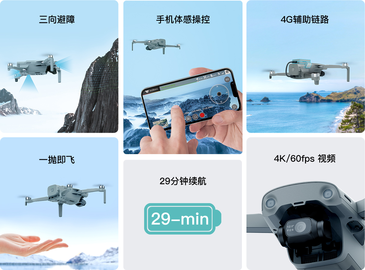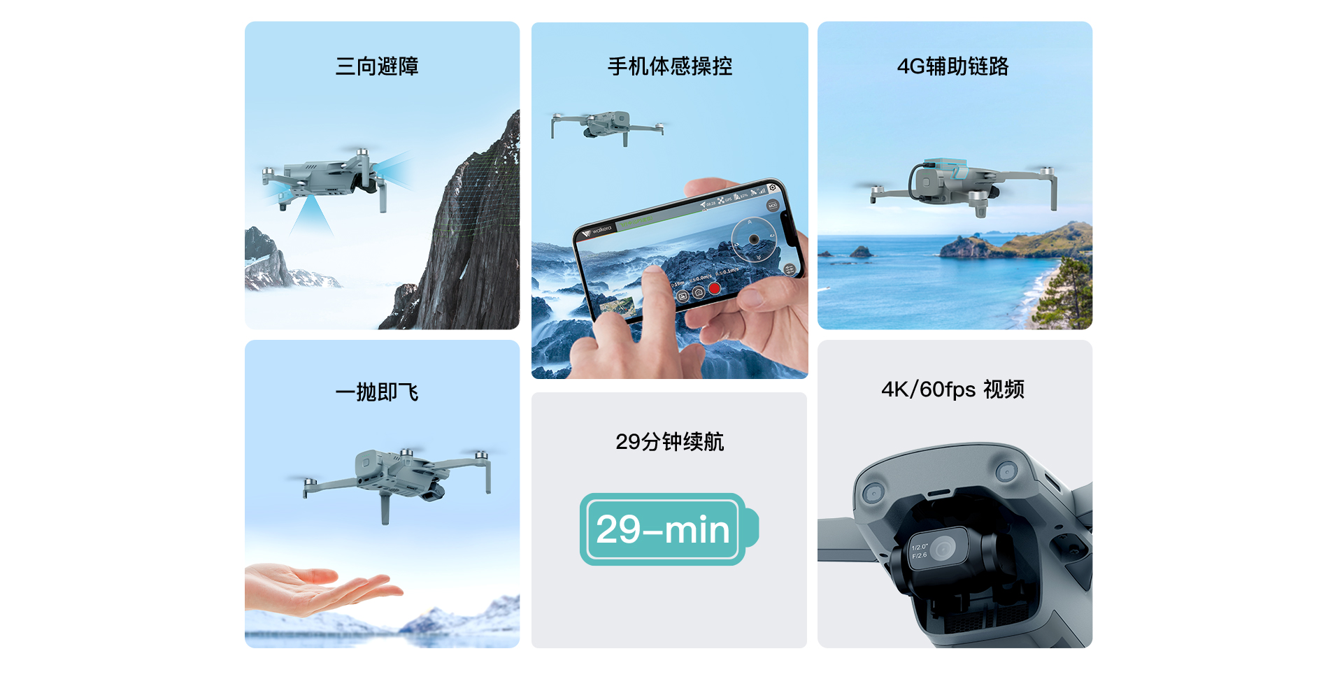 采用手機體感操控,讓您輕松駕馭各種高難度飛行及拍攝,帶來全新的飛行體驗。
